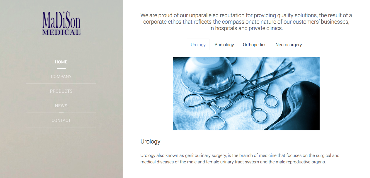As a leading company to its area of expertise, Madison's Medical web presence needs to reflect the company's status and assist the company to communicate with its clients both domestically and abroad.